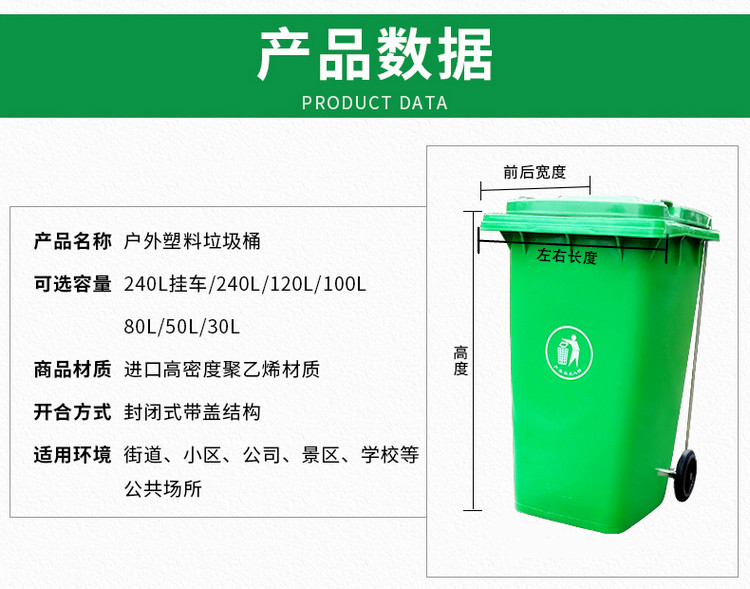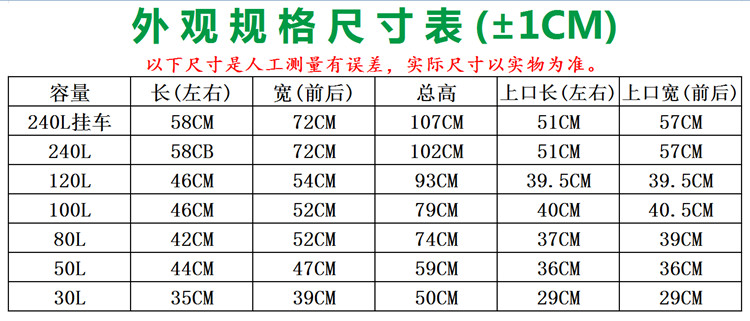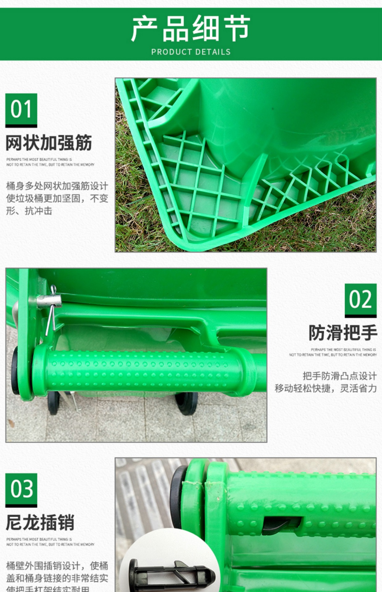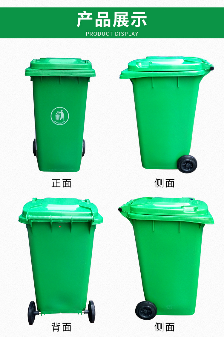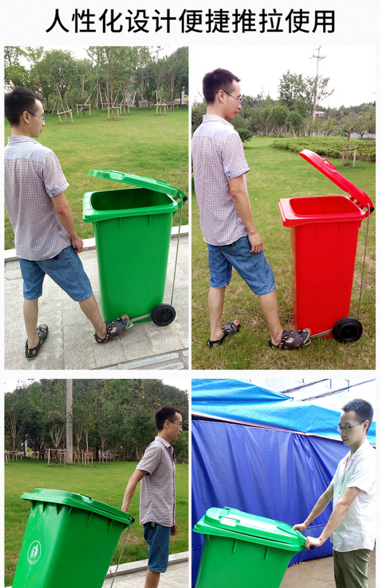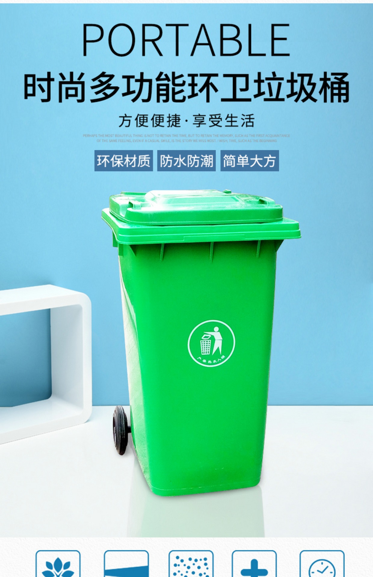 加厚新料款 室外环卫垃圾车 带轮大号垃圾桶 蓝色