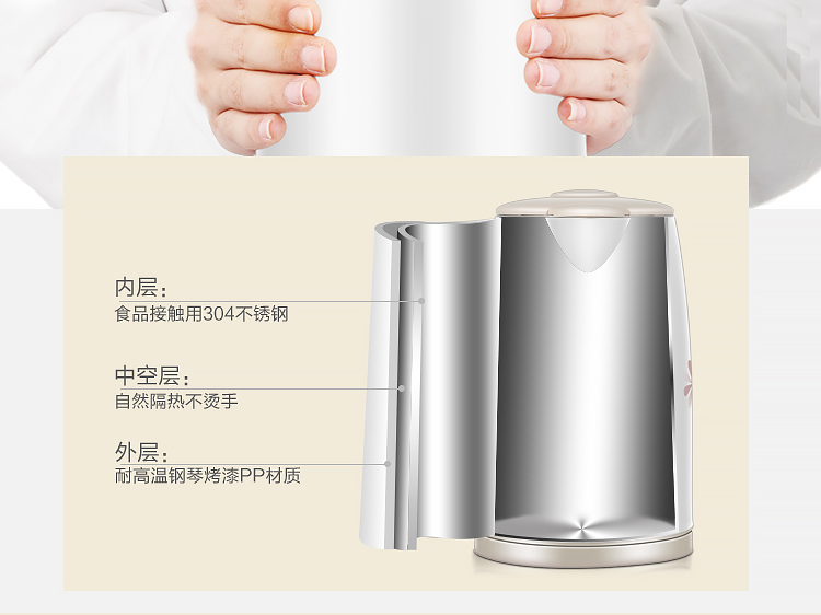 电热水壶材质:工厂塑料+不锈钢