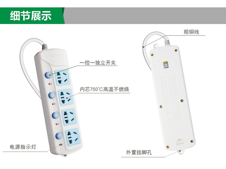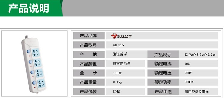 公牛插座独立开关接线板 插线板 插排GN-315排插1.8米