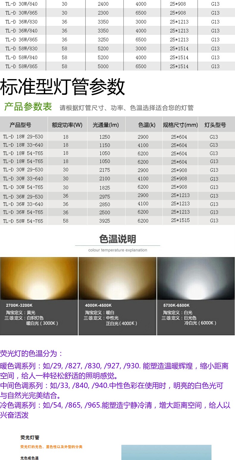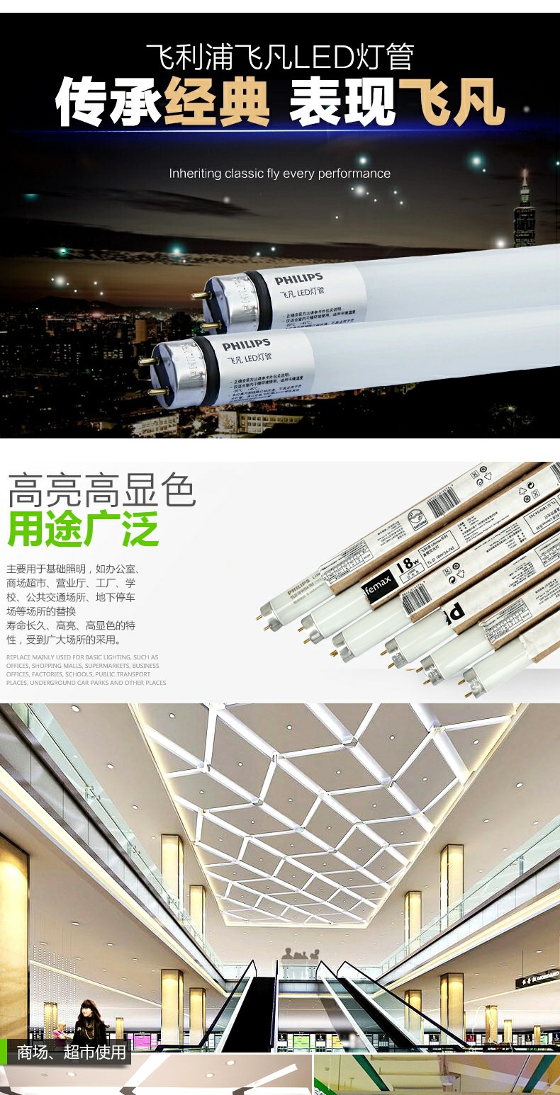 | 产品名称 : | 飞利浦灯管18w 三基色灯管 T8日光灯管格栅灯 荧光灯管30w36wT8 865 |