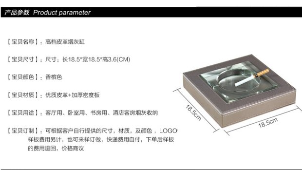 定制高档简约 现代 创意 皮质烟灰缸 黑色