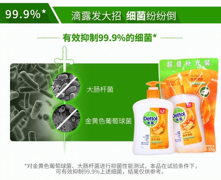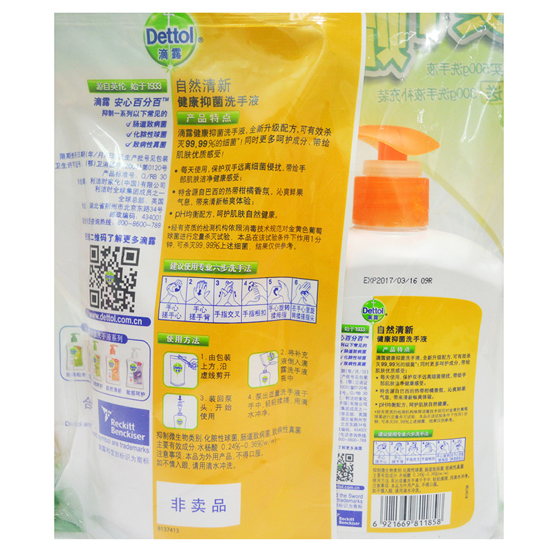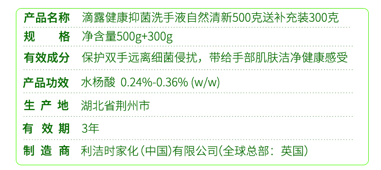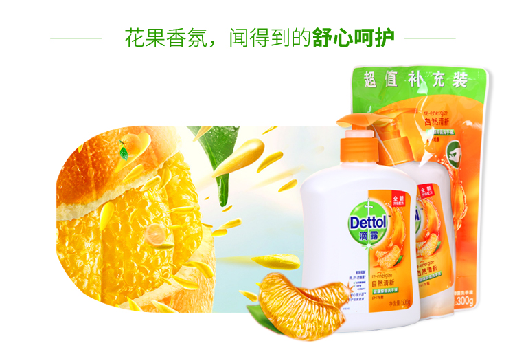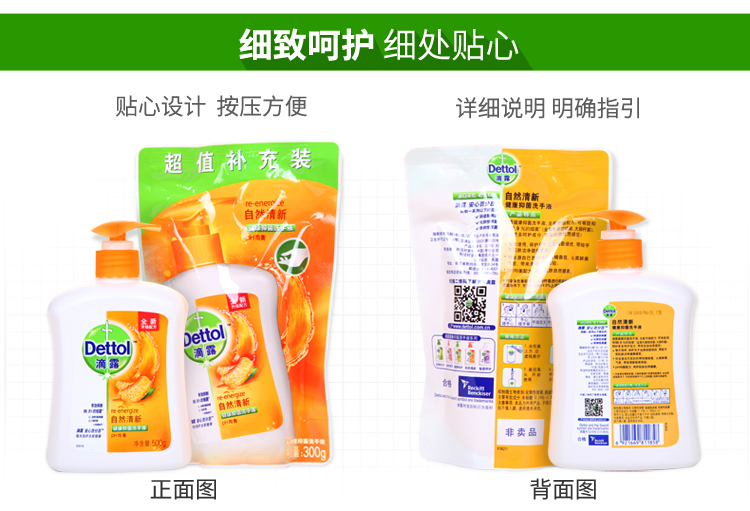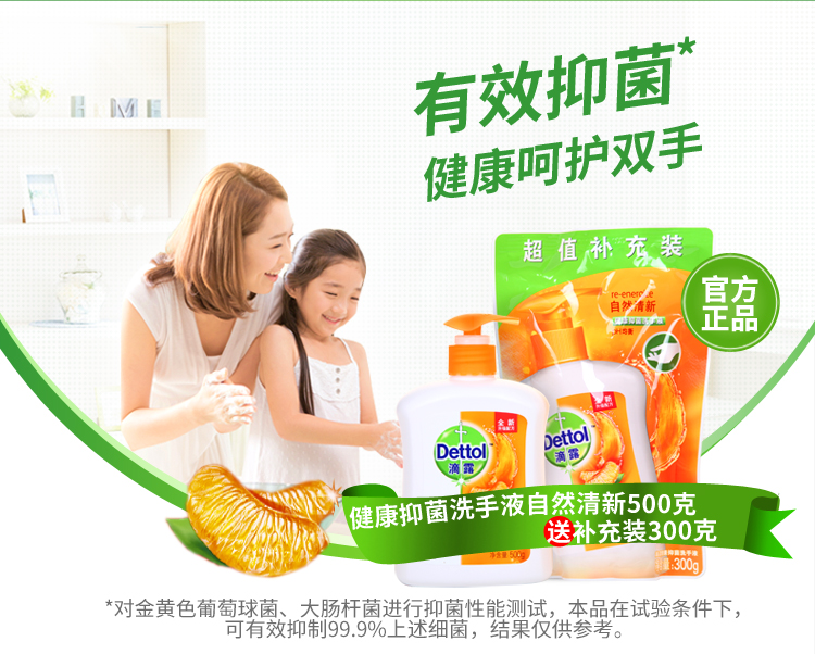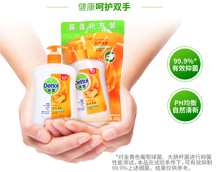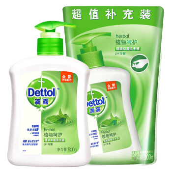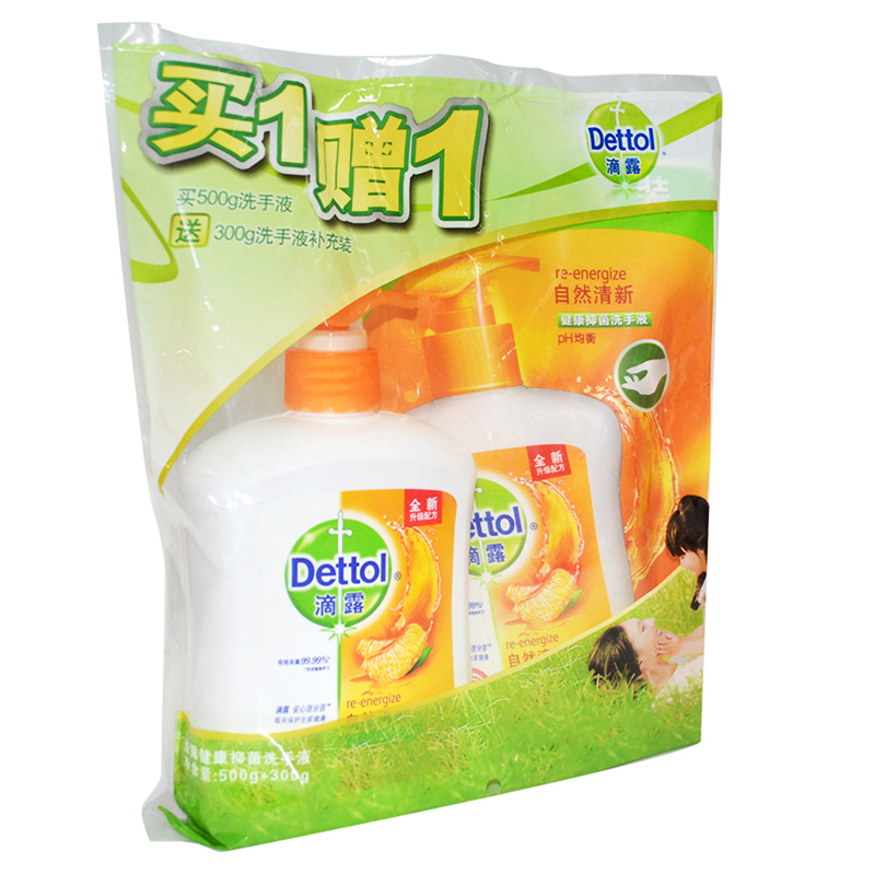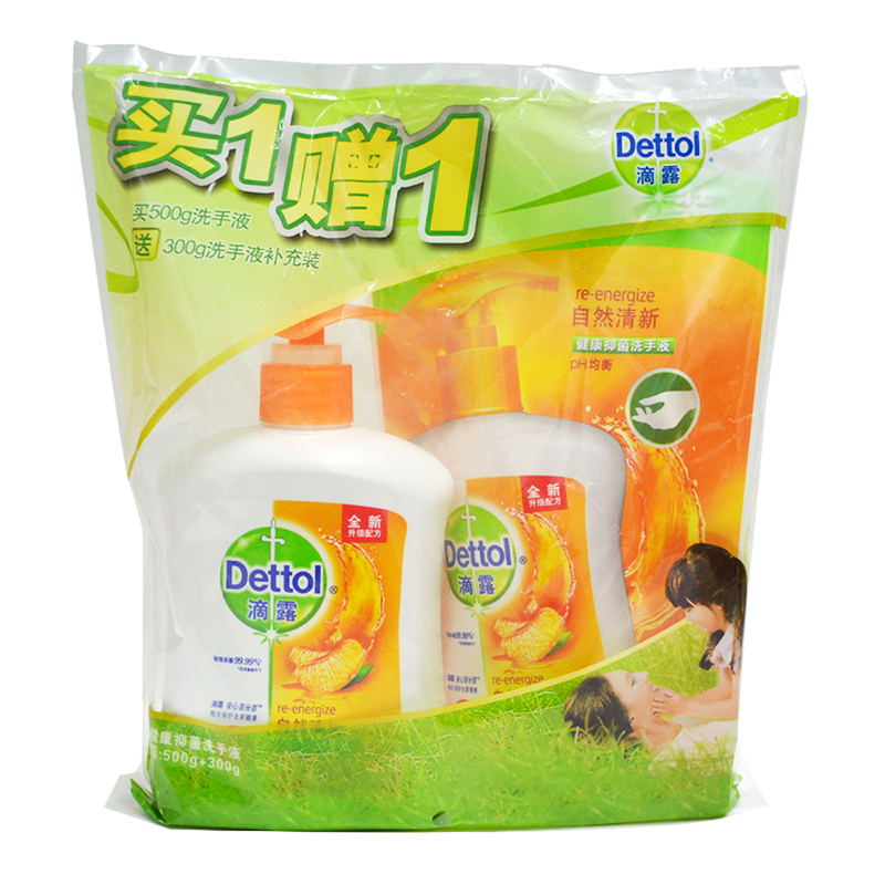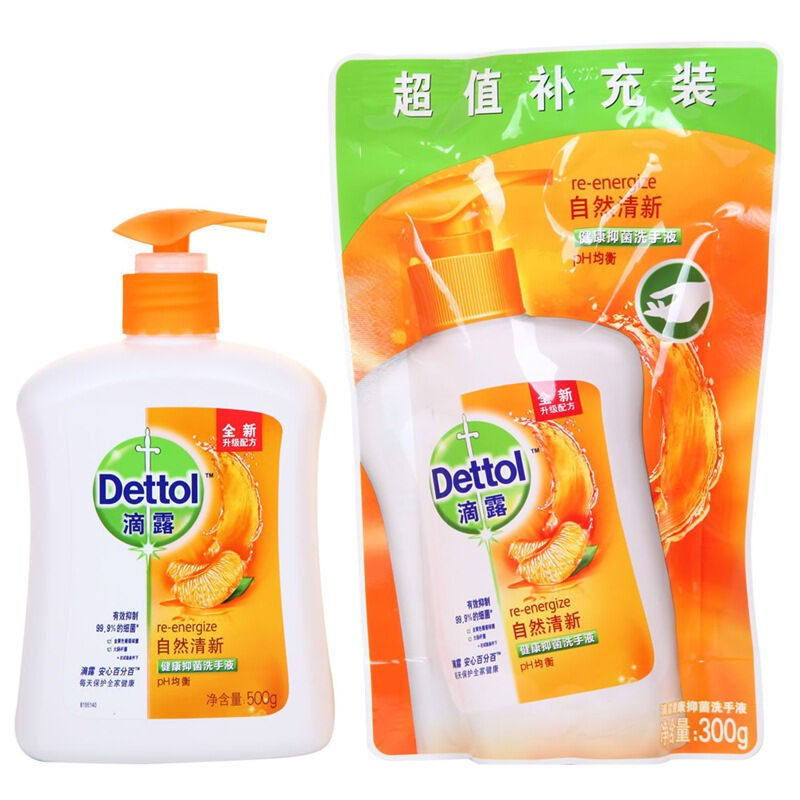 滴露健康抑菌洗手液 自然清新 套装500g +300g补充装
