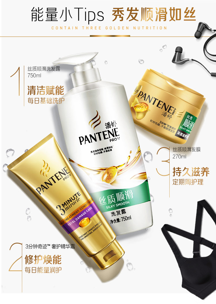 潘婷洗发水 丝质顺滑750ml秀发能量 洗发露
