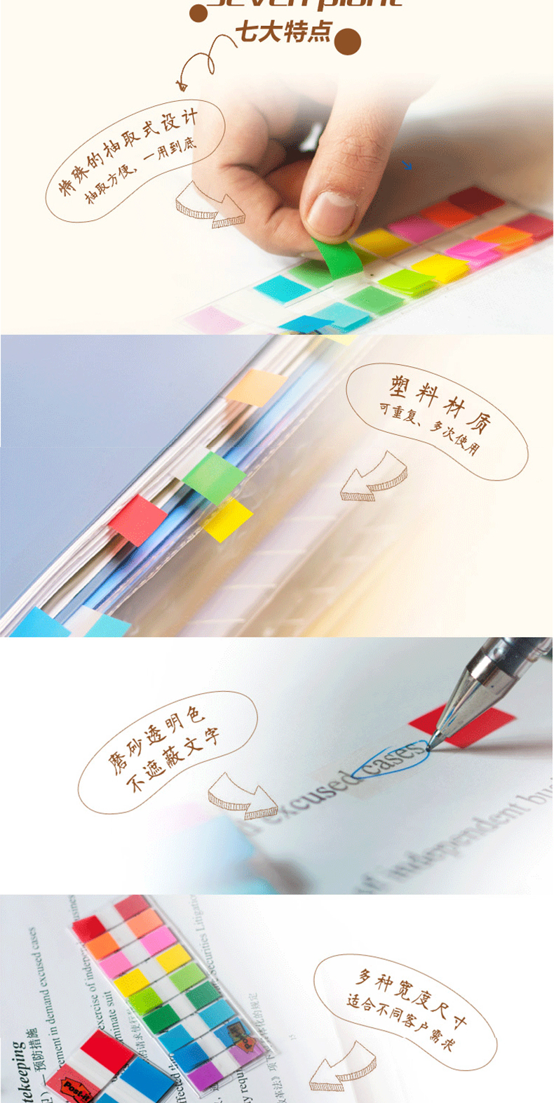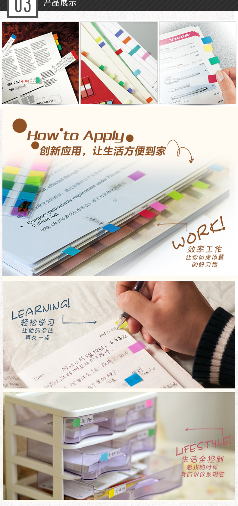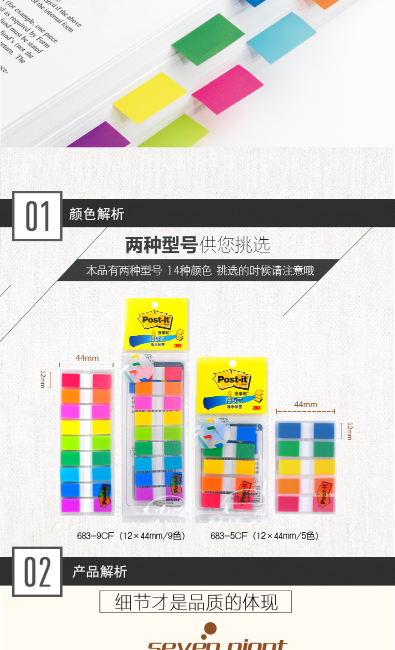 3M 683-5CF 透明指示标签 12*44mm 5色