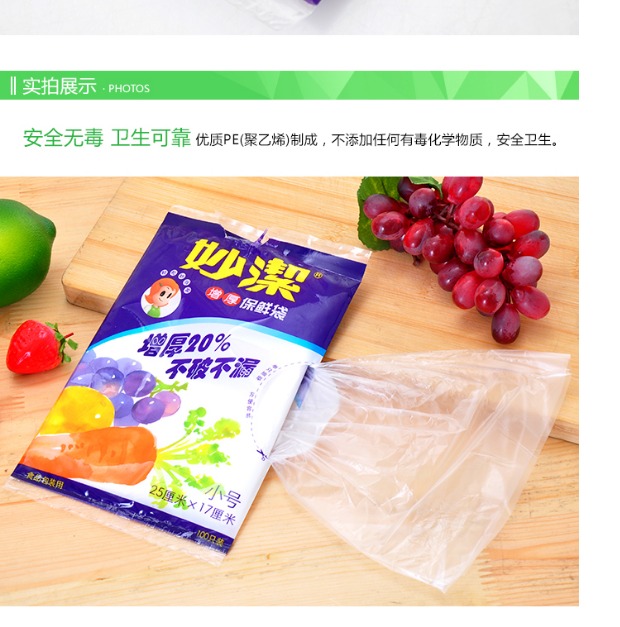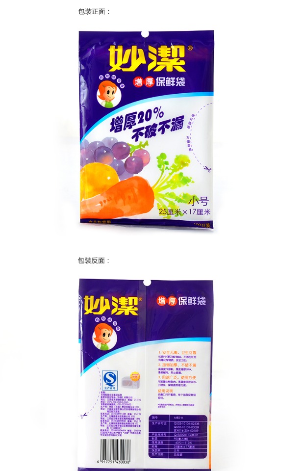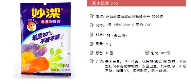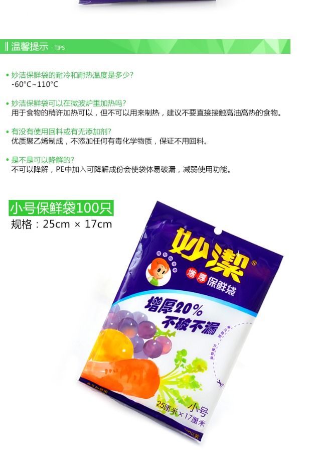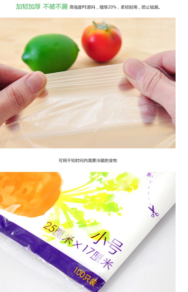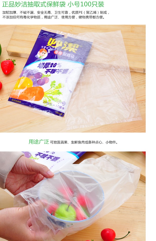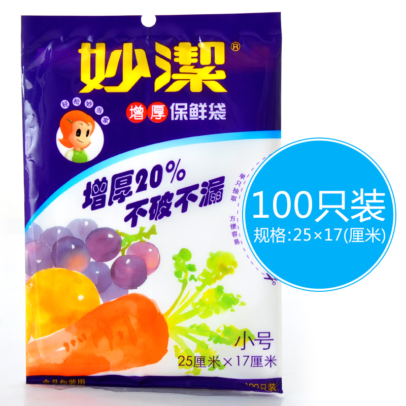 妙洁小号100只装加厚抽取冰箱保鲜袋25*17cm