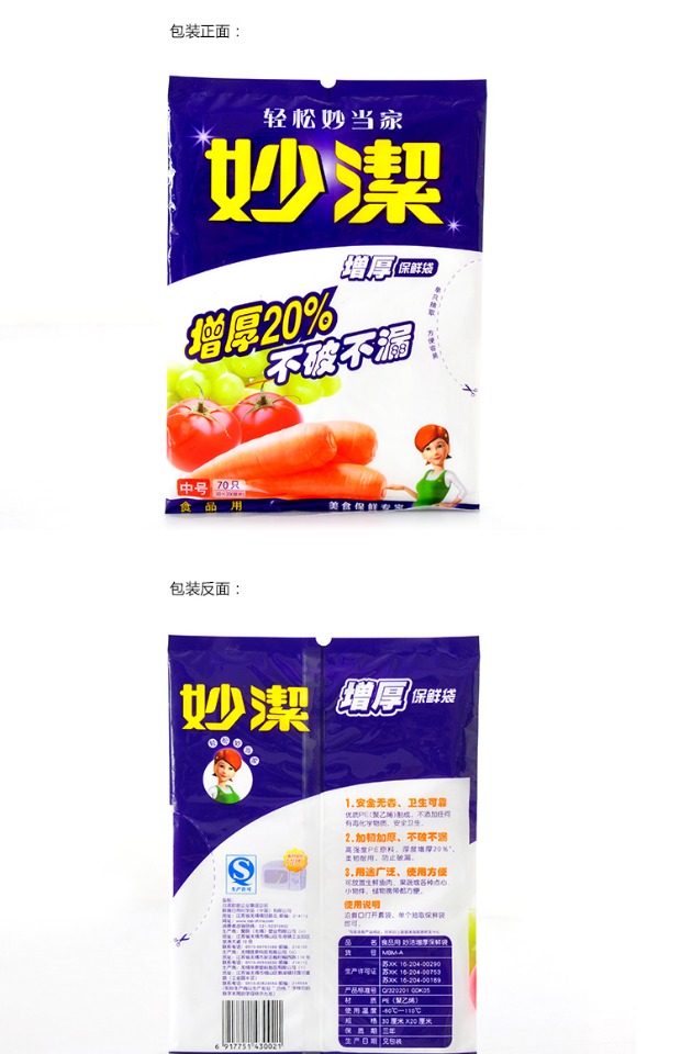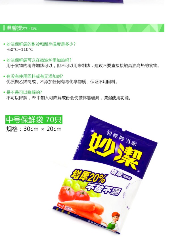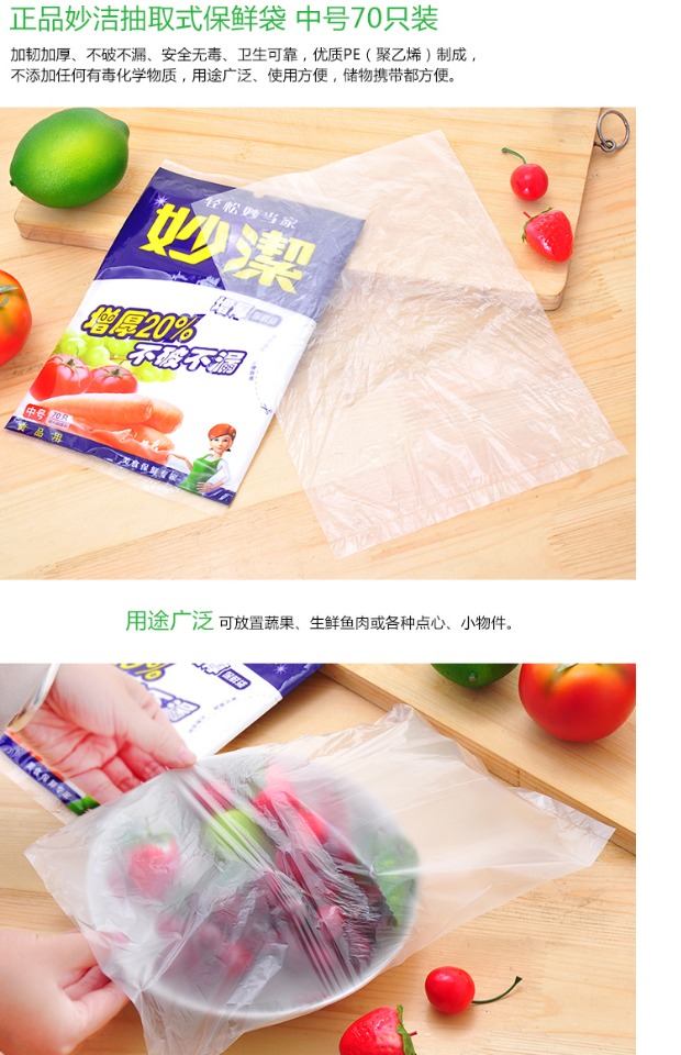 妙洁一次性抽取式保鲜袋 加厚中号30*20cm 70只装
