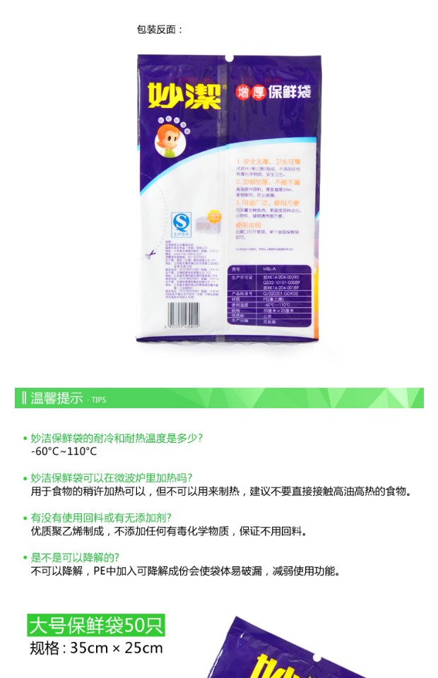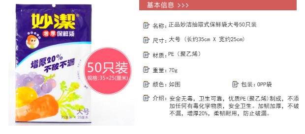 妙洁 保鲜袋抽取式大号 35cm*25cm*50只