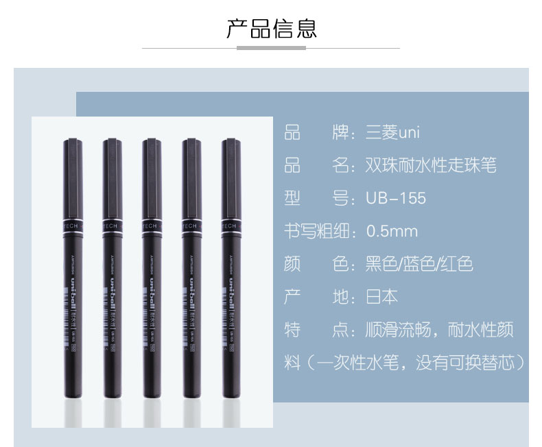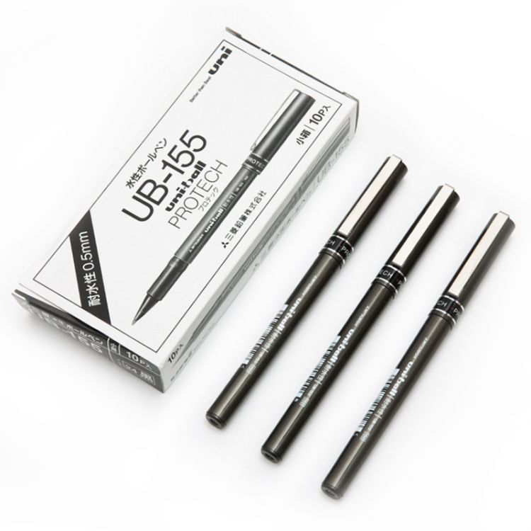 进口三菱耐水性签字笔 UB-155 0.5mm 10支/盒黑...