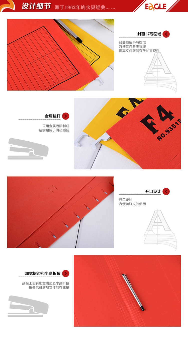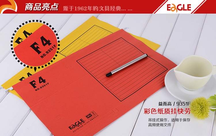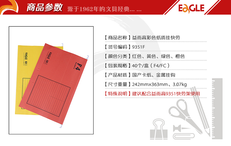 益而高9351文件吊夹挂快劳40个/盒 F4 颜色随机