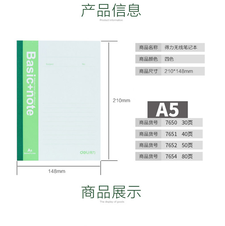 得力7650无线软面笔记本A5/30页软面抄