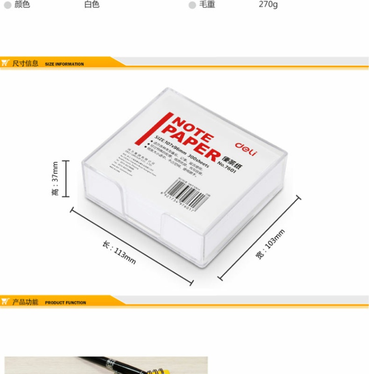 得力7601便条纸 300张/盒107*96 mm