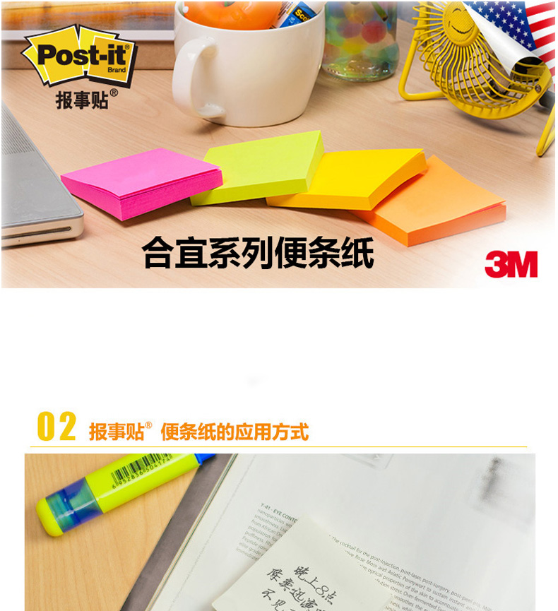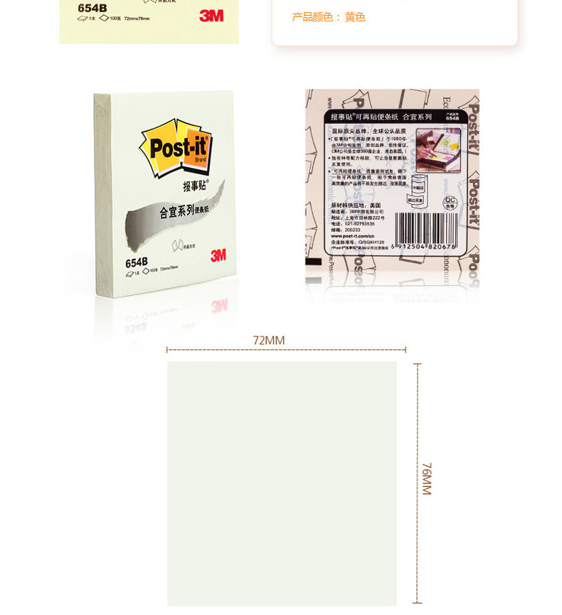 3M合宜654报事贴 3x3 8本/包