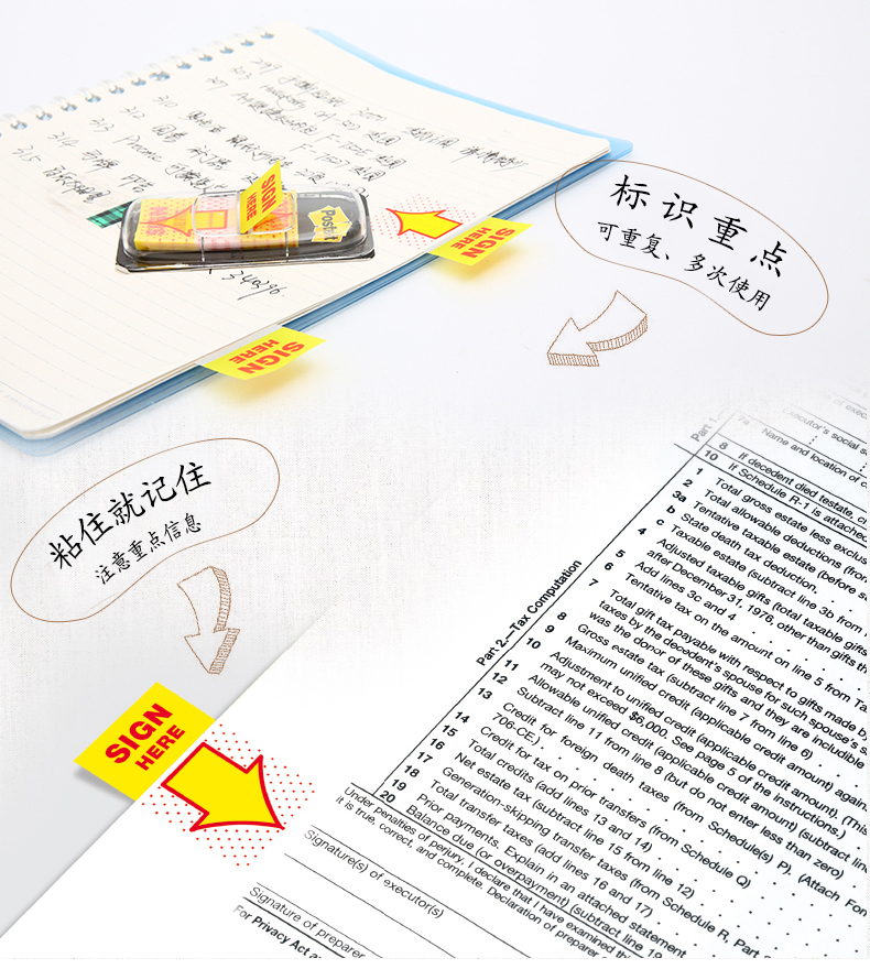 明确签名位置,缩短查找时间;抽取设计一拉到底。可重复使用,不留残胶。