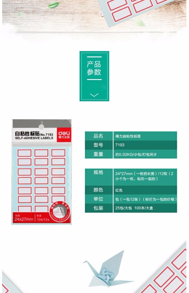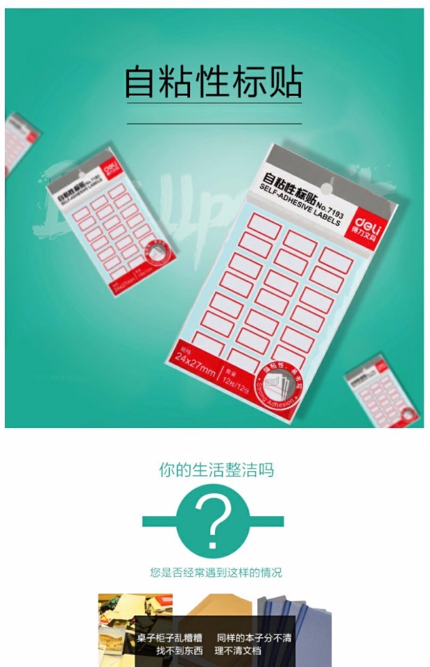 得力7193 标签贴2.4*2.7cm 标贴自粘性标签纸 1...