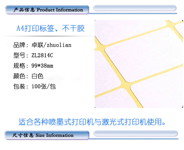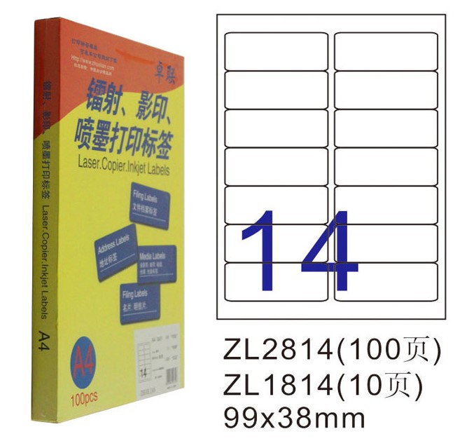 卓联A4打印标签99*38mm电脑打印标签ZL2814C