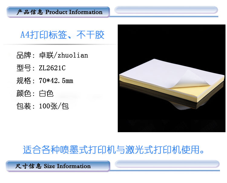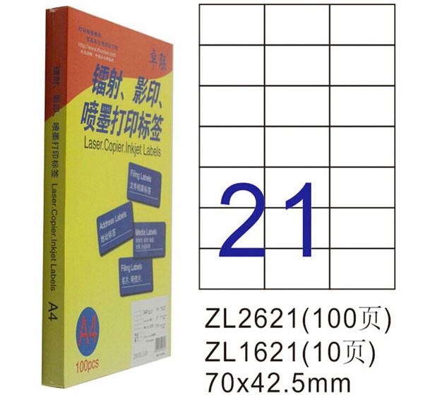 卓联A4打印标签70*42.5mm电脑打印标签ZL2621C