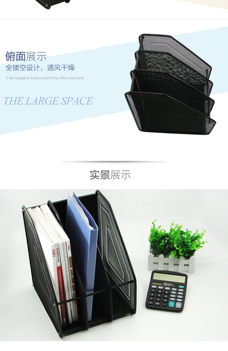 SH金属铁丝网状三格文件架/文件栏