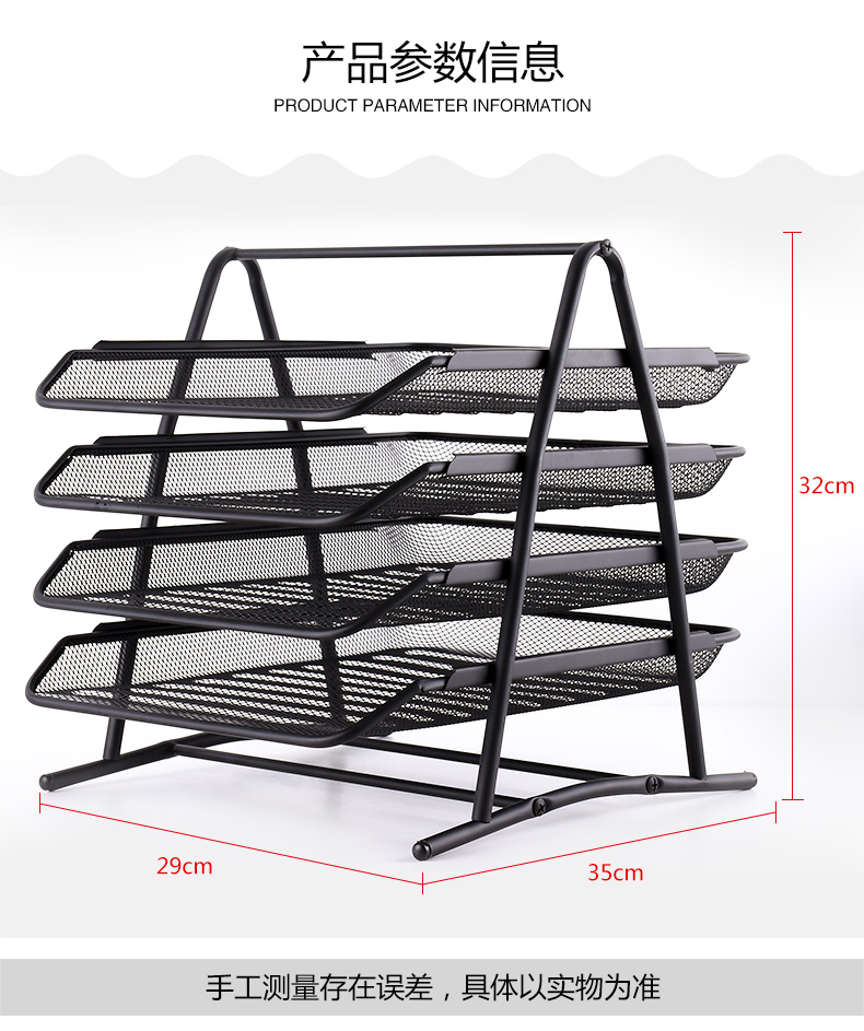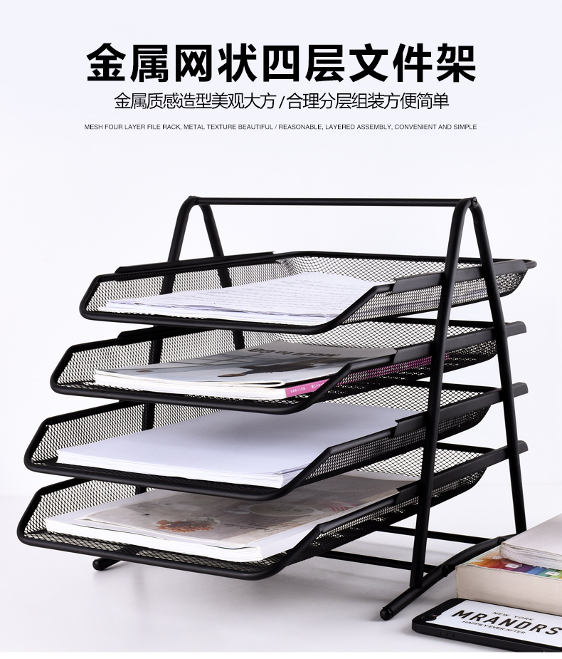 SH金属铁丝网状三层文件盘 文件架 黑色