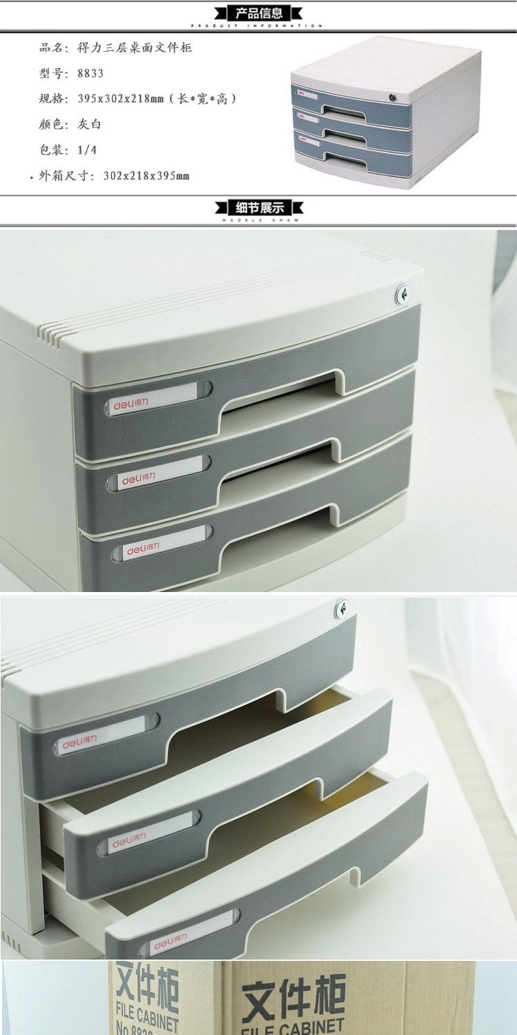 得力8833三层硬塑文件柜 文件桌面柜