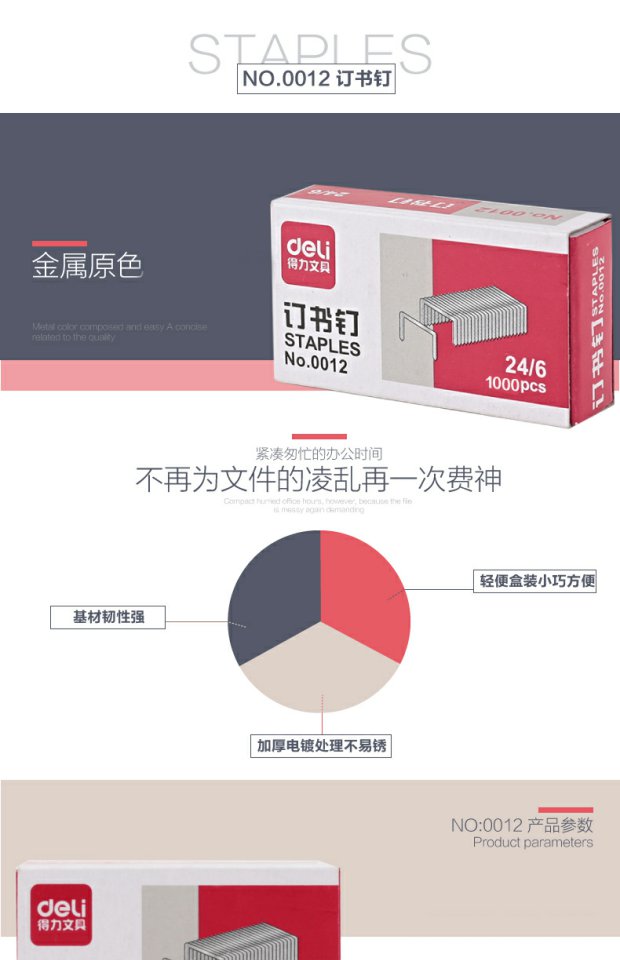 得力 0012 统一钉书针 12号订书钉 得力通用订书机钉