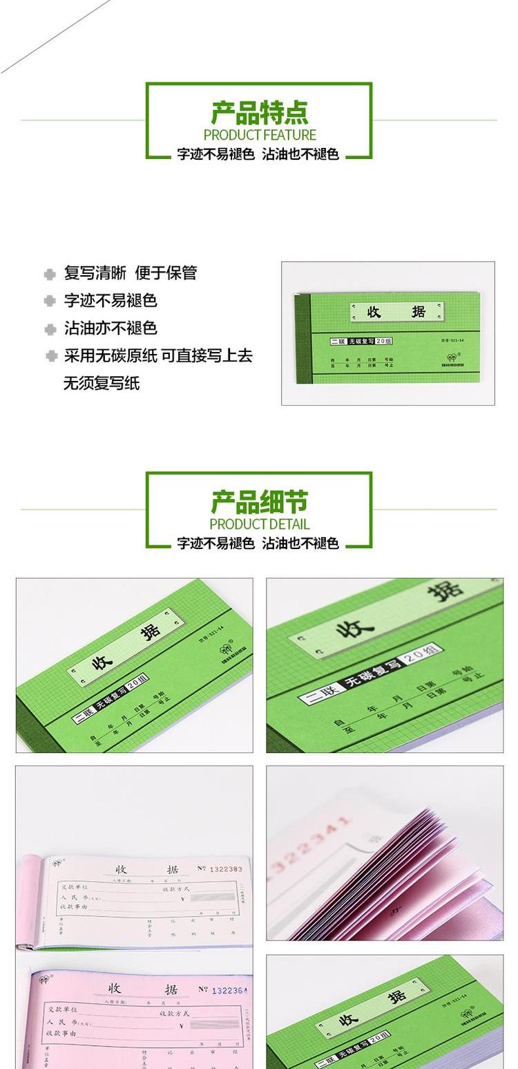 强林521-54二联收据无碳复写复印清晰热销财务办公用品10...