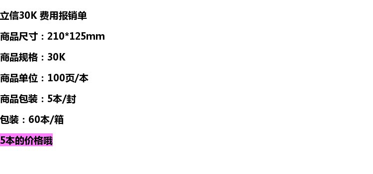 立信 121-30费用报销单 30K报销单财务用品 5本