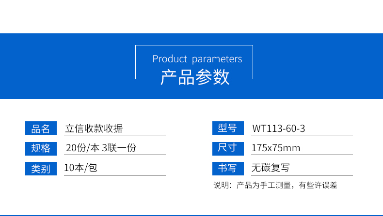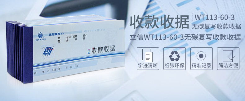 立信WT113-60-3收款收据 三联收据 立信收据无碳复写...