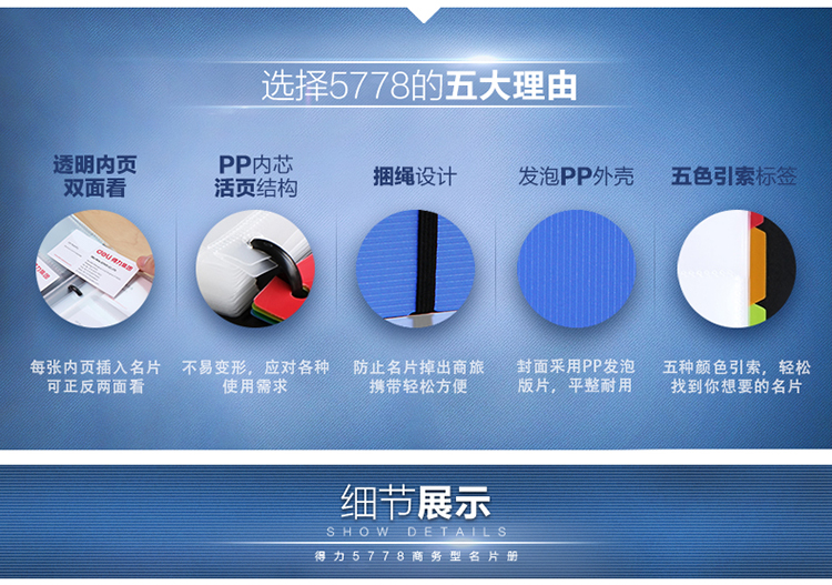 得力 时尚活页名片册30页 180枚 5778