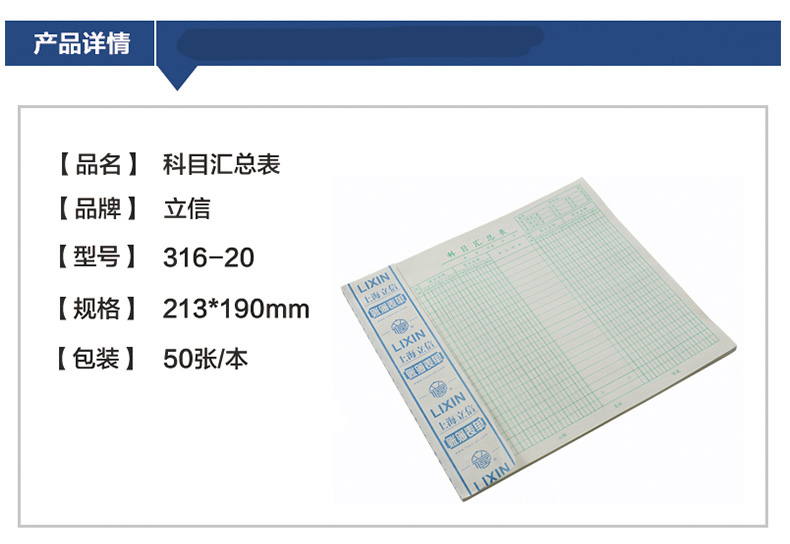 立信316-20科目汇总表 立信汇总表 立信科目汇总表