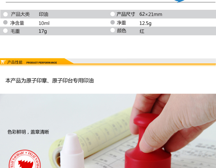 得力9873原子印章油印台快干印油泥防水10毫升